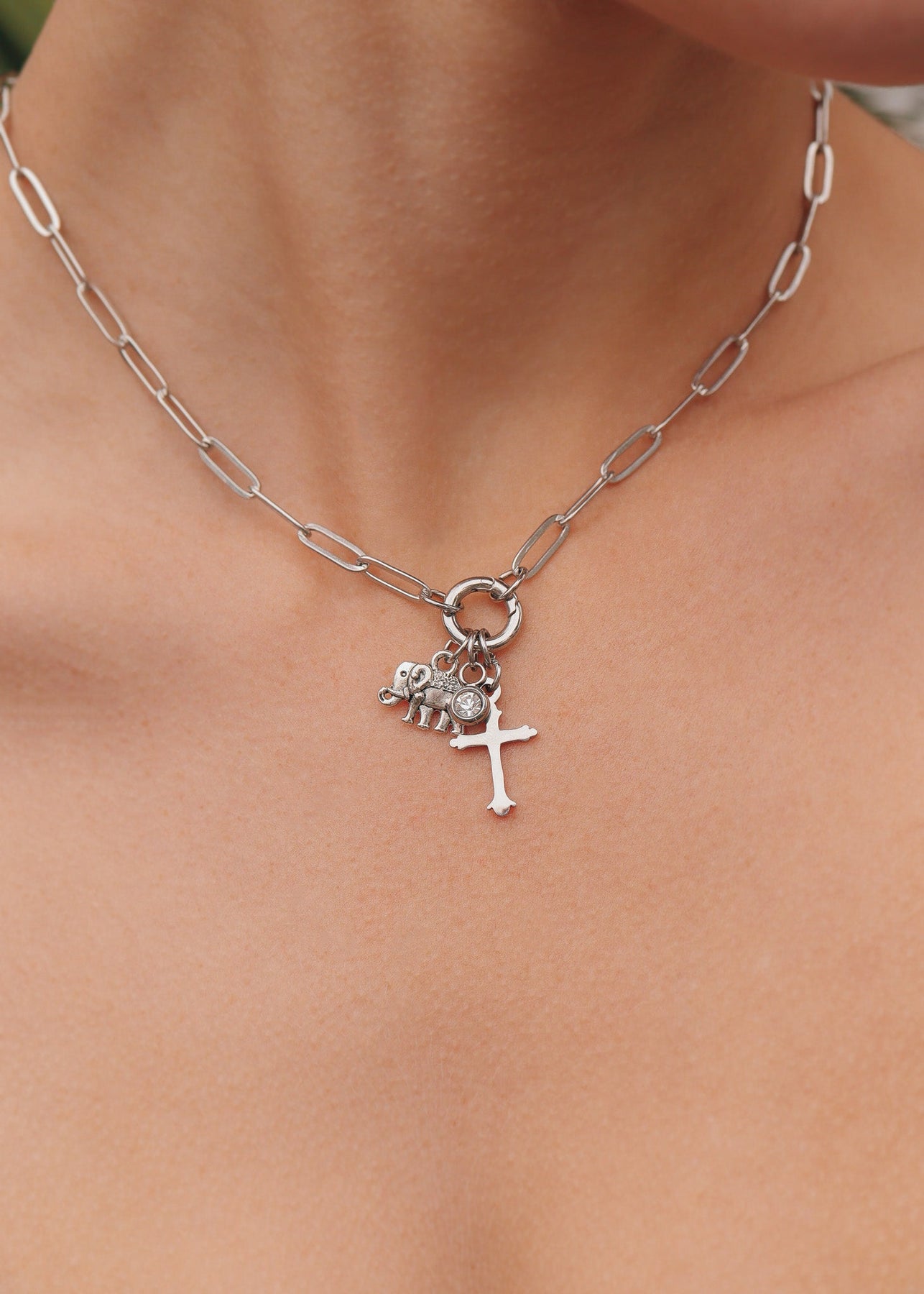 Featuring sleek paperclip-style links and an easy-to-open charm keeper attachment, this necklace is perfect for adding your favorite charms, pendants, or connectors. Wear it solo for a clean look or layer it with other chains to create a bold, curated stack.✨ A modern base for your most meaningful pieces.