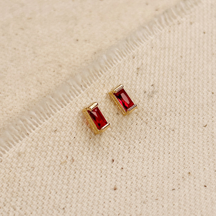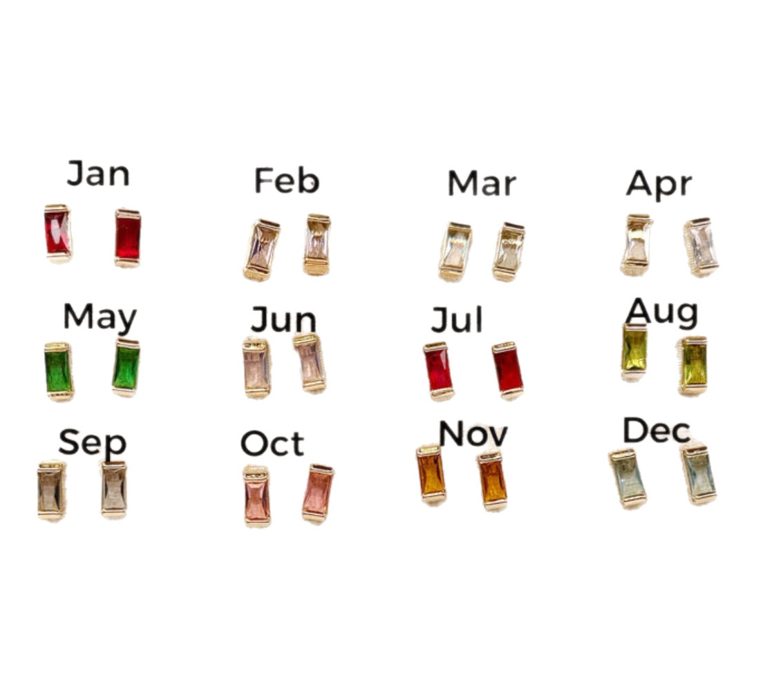 Celebrate your month in style with these Gold Filled Baguette Birthstone Stud Happy Birthday Earrings, crafted with the highest quality colored cubic zirconia stones. Each earring features a sleek baguette-cut stone that captures the light beautifully, bringing vibrant color and modern elegance to a classic stud design.
