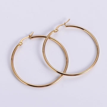 Crafted from 18K gold using Physical Vapor Deposition (PVD) over Stainless Steel, these hoops are hypoallergenic, water-resistant, and tarnish-free, ensuring long-lasting shine and comfort. Their lightweight construction makes them easy to wear all day, while the secure clasp keeps them in place effortlessly.