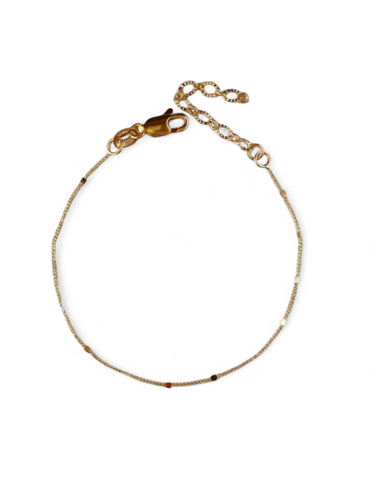Crafted from premium gold filled material, it is hypoallergenic, nickel-free, and water-resistant, ensuring durability and everyday comfort. Finished with a secure lobster clasp, this lightweight bracelet is perfect for wearing solo for a minimalist look or layering with other favorites for added dimension.