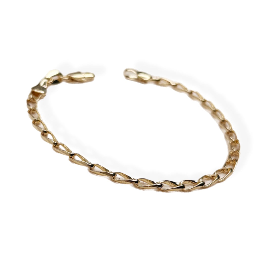 Refined and versatile, this Gold Filled Slight Twist Link Boldly You Bracelet features delicately crafted links with a subtle twist that catch and reflect the light beautifully. Its elegant texture adds depth to a classic chain style, making it perfect for everyday wear or layering with other favorites.