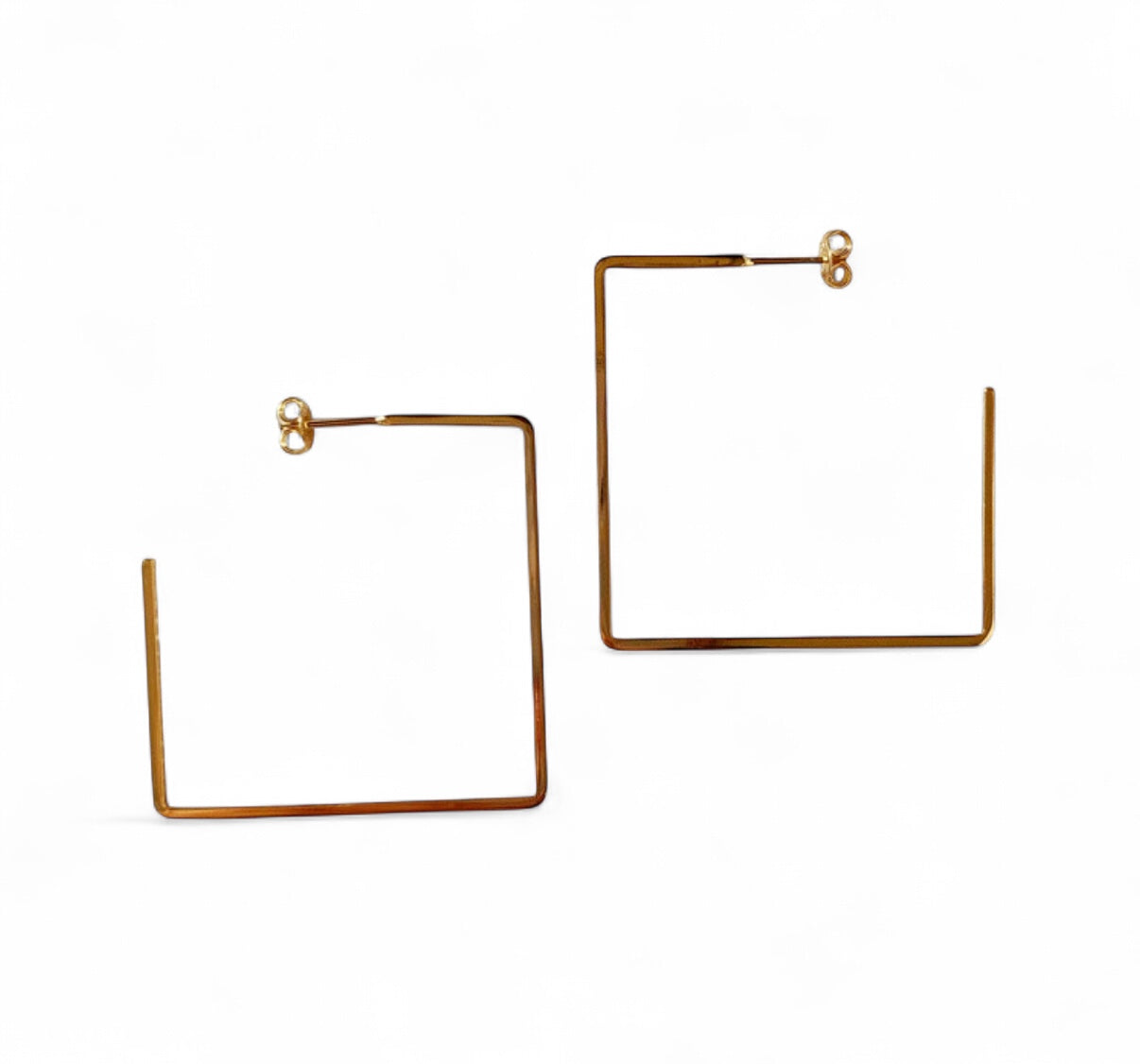 Minimalist and modern, these Lightweight Square Wire Semi-Hoop Show Stopper Earrings feature a sleek open design crafted from slender square wire for a clean, geometric look. Their airy silhouette makes them comfortable for all-day wear, while the polished finish adds just the right amount of shine.