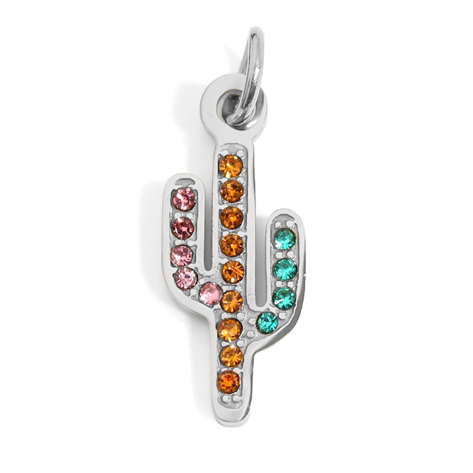 CZ Cactus Charm. Add a playful pop of sparkle with our Cactus Charm, featuring shimmering Cubic Zirconia accents and a luxe 18K Gold PVD finish over durable stainless steel.
