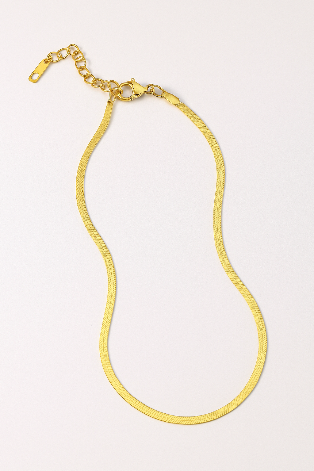 Sleek, smooth, and effortlessly chic — the Isla Herringbone Necklace is your new everyday essential. Crafted from gold-tone stainless steel with a 2mm flat herringbone design, it drapes gracefully against the skin for a timeless, polished look. Lightweight and adjustable, this necklace transitions seamlessly from casual days to elegant nights.