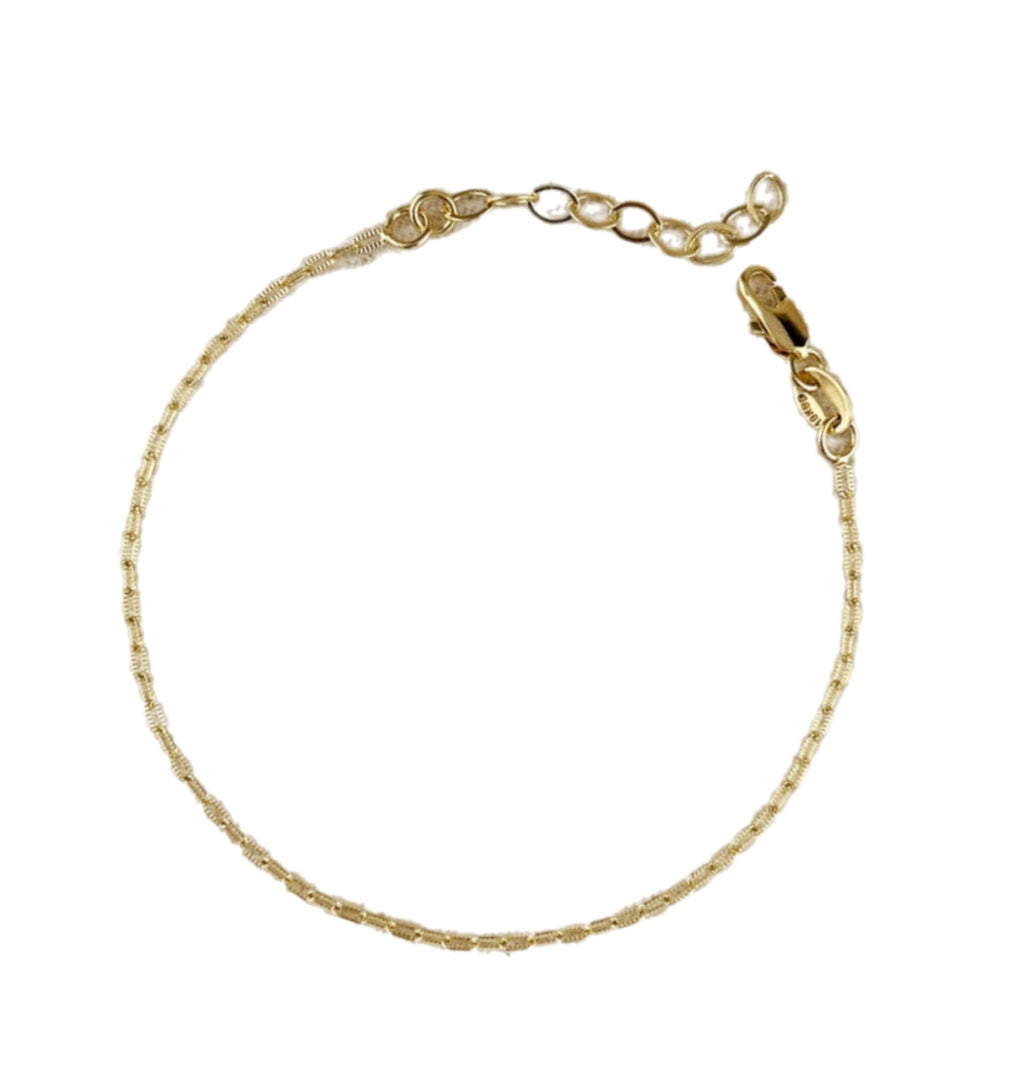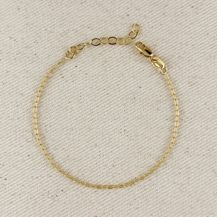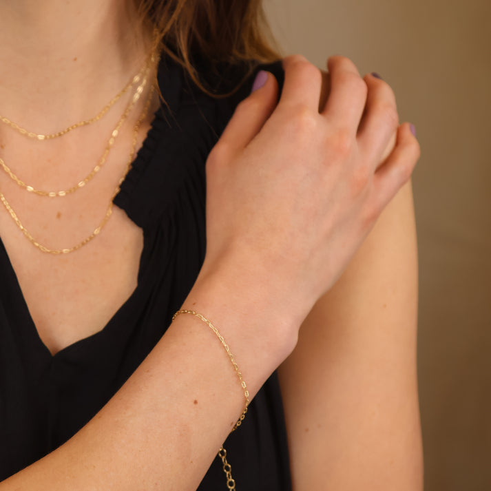 Elegant and understated, our Mini Diamond Cut Paperclip Chain Choose Me Bracelet is designed to catch the light with every movement. Featuring slim, elongated links with precisely cut facets, this bracelet sparkles with a subtle brilliance while maintaining a minimalist feel. Its lightweight design makes it perfect for everyday wear — whether worn solo for a delicate touch or stacked with your favorite pieces for a layered look.