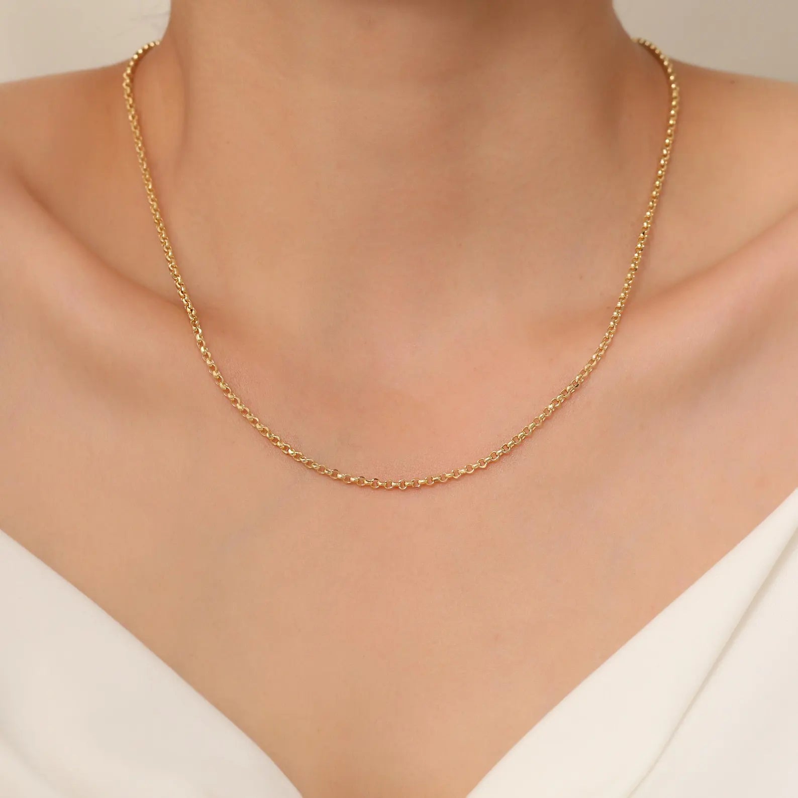 Classic and versatile, our Rolo Chain Joyful Path Necklace from the Legacy Line is crafted with a 1.3mm rolo chain, featuring perfectly round interlocking links for a timeless look. Its smooth, polished finish reflects the light beautifully, making it an essential piece for both minimalist wear and layered styling.