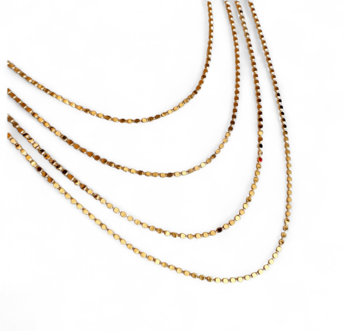 Timeless and versatile, our Legacy Line Ever After Necklace is crafted from Gold Filled material with a sleek 2mm flat ball chain design. The polished spheres lie smoothly along the neckline, catching the light with subtle shimmer for a refined yet minimalist look.