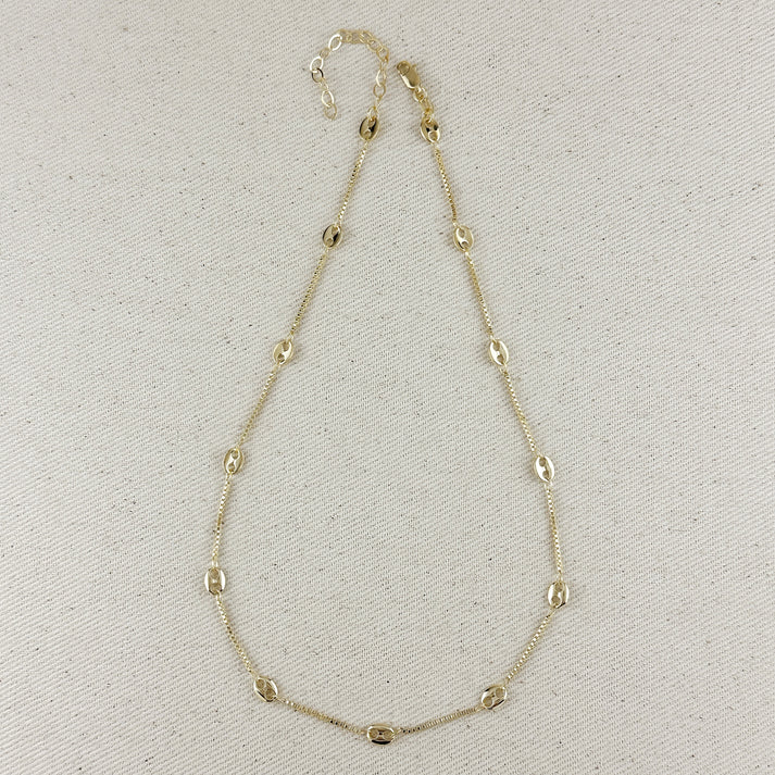 Elevate your everyday look with this Fancy Box Chain Inner Glow Necklace, featuring a distinctive design that combines refined square links with smooth oval connectors. The unique interplay of shapes creates a necklace that’s both delicate and eye-catching, perfect for adding a touch of elegance to any outfit. Lightweight and versatile, it layers beautifully with other necklaces or stands out on its own as a subtle statement piece.