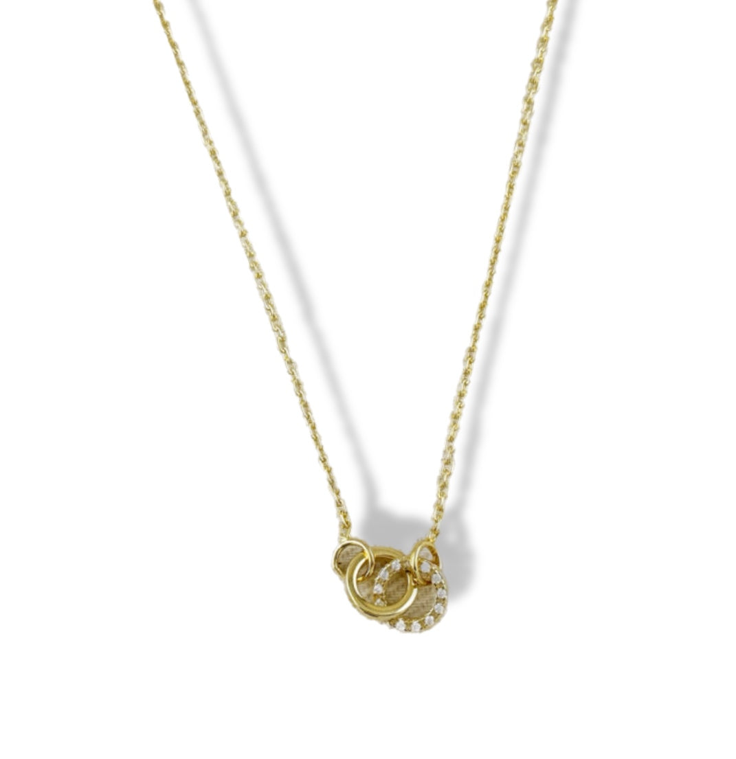 A timeless symbol of unity and balance, our Linked CZ Soul Energy Necklace features a centerpiece of two interlocking circles—one adorned with brilliant cubic zirconia stones and the other polished to a radiant shine. The contrasting finishes create a sophisticated yet modern look, perfect for everyday elegance or meaningful gifting. Suspended from a delicate chain, this necklace layers beautifully or makes a graceful statement on its own.