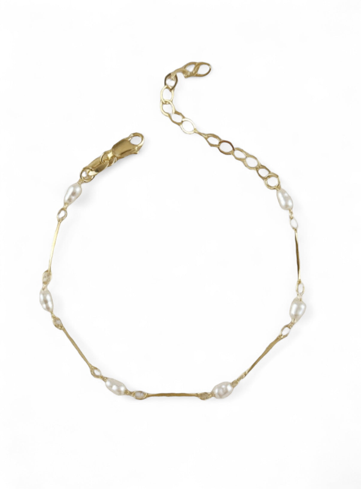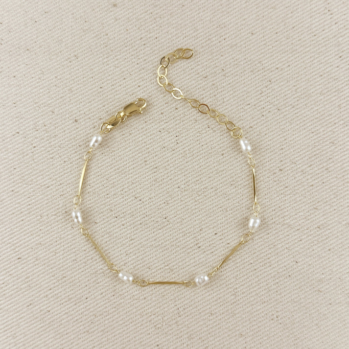 Add timeless elegance to your collection with this Pearl Bead & Straw Pure Vibes Bracelet. Featuring luminous pearl beads delicately spaced between sleek, straw-shaped gold links, this design blends classic charm with modern minimalism. Its lightweight structure makes it perfect for everyday wear or layering, while the alternating textures create a subtle yet eye-catching rhythm. Whether styled alone or paired with a necklace, this piece is a versatile staple that elevates any look.