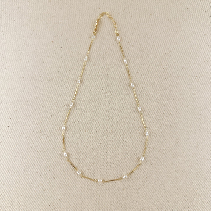Add timeless elegance to your collection with this Pearl Bead & Straw Pure Vibes Necklace. Featuring luminous pearl beads delicately spaced between sleek, straw-shaped gold links, this design blends classic charm with modern minimalism. Its lightweight structure makes it perfect for everyday wear or layering, while the alternating textures create a subtle yet eye-catching rhythm. Whether styled alone or paired with other necklaces, this piece is a versatile staple that elevates any look.
