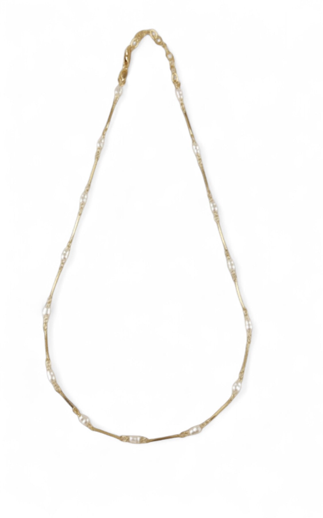 Design: Alternating pearl beads and straw-shaped gold links