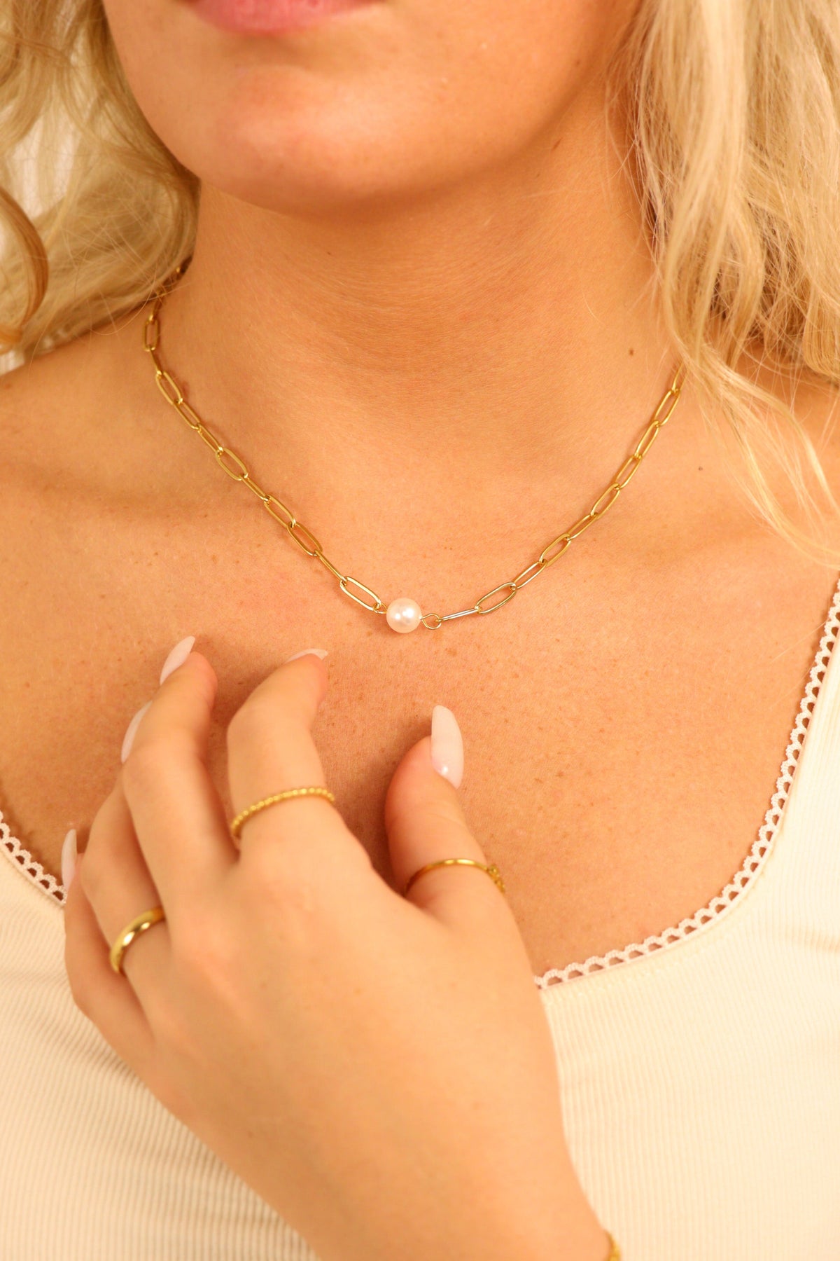 Featuring a sleek paperclip chain and a high-quality 8mm Kiska-colored glass pearl, this piece brings a fresh update to the classic pearl necklace. Whether layered with other chains or worn solo, it offers a striking yet effortless look your customers will love.✨ A modern pearl moment — made to layer or stand alone.