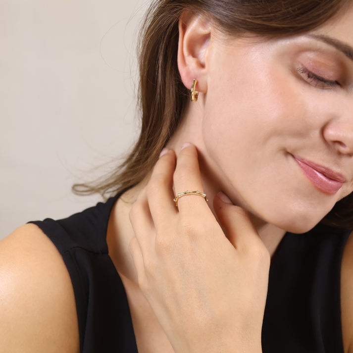 Inspired by the natural beauty of bamboo, our Legacy Line Serenity Ring features a delicate, textured design that mimics the organic segments of bamboo stalks. Its polished gold finish adds a modern elegance while maintaining a nature-inspired charm.