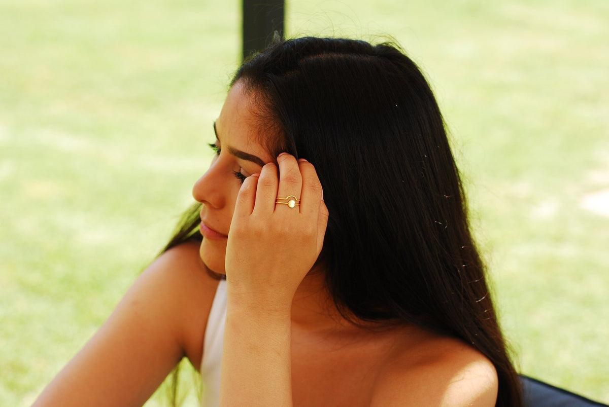 Stacking Ring Dot and Curved Band - Choose 925 Sterling silver or 18k Gold Circle Ring Confetti Dot Stackable Ring Ring Set Harper Crown