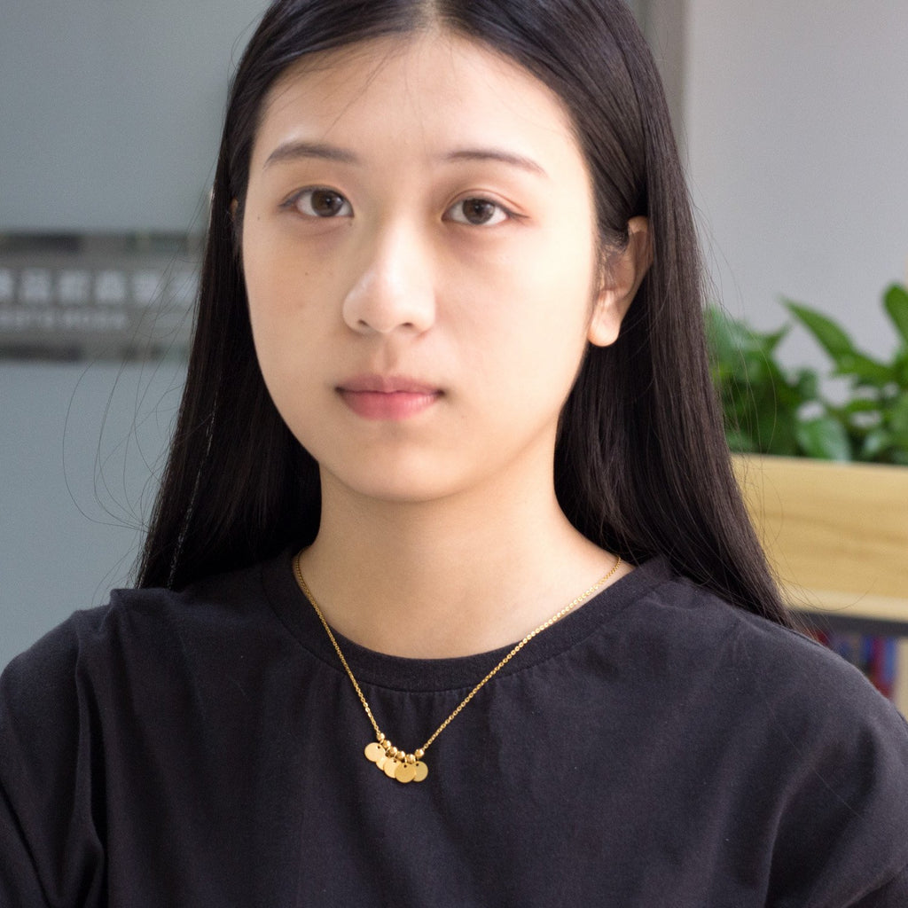 Delicately bold and endlessly playful, this Coin Cluster Charm Necklace brings movement and shimmer to every look. Featuring a cascade of polished round charms suspended from a classic gold-plated chain, this piece adds a lively, boho-chic flair to your everyday layers. The reflective discs catch light effortlessly, making it a standout solo or perfect for stacking.