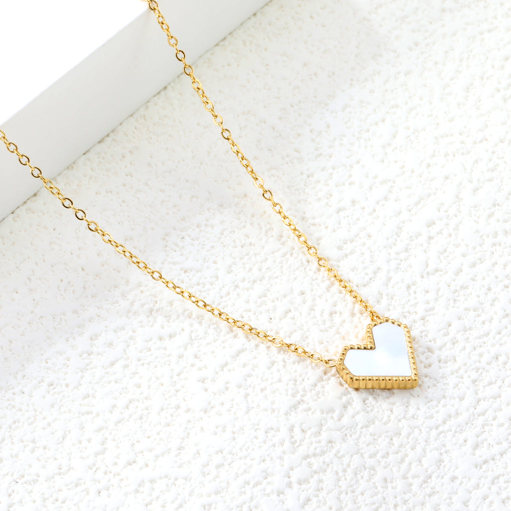 This delicate Endless Love Necklace features a hammered gold frame surrounding a glossy, iridescent heart made from mother-of-pearl. Suspended on a dainty chain, it brings a romantic yet refined touch to any look — light, airy, and full of shimmer.