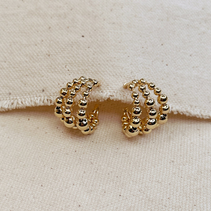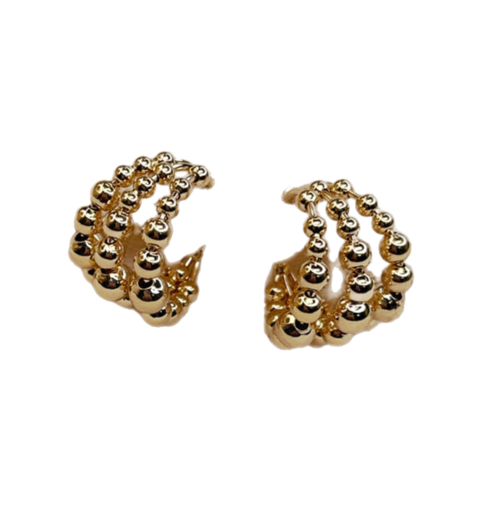 Make a bold yet elegant statement with these Gold Filled Triple Line Beaded C-Hoop Its Complicated Earrings. Designed with three parallel rows of polished beaded detailing, these hoops bring depth, texture, and shine to a classic silhouette.