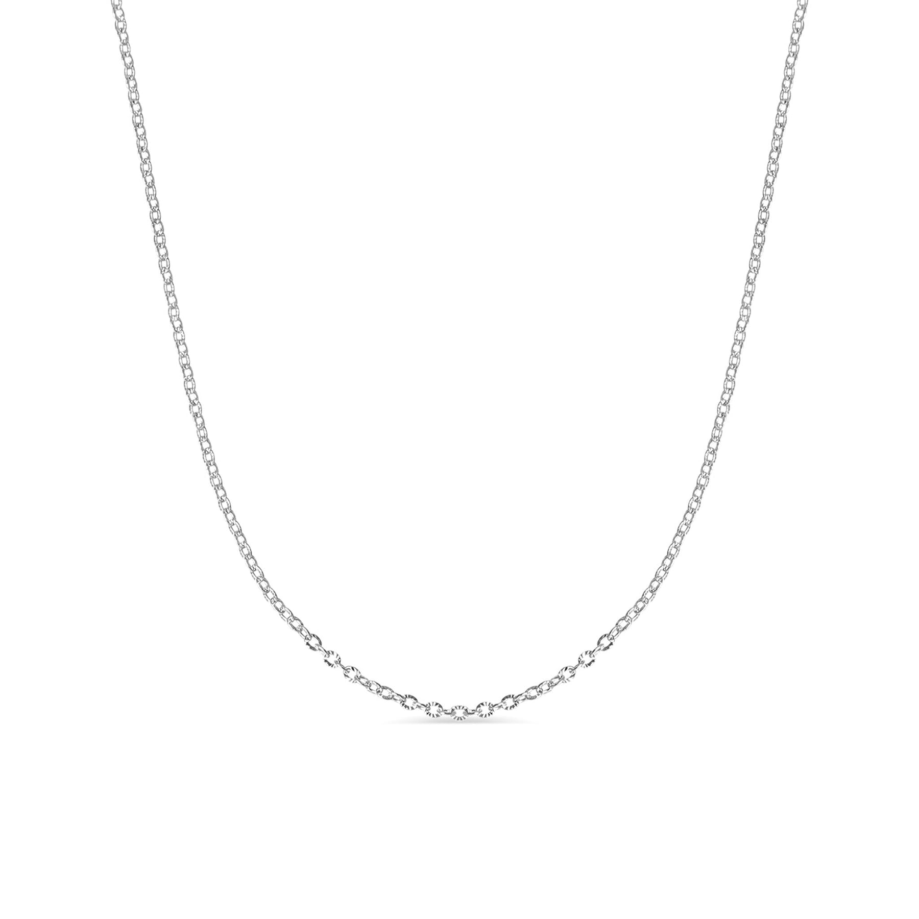 This 1.5mm-wide chain features crimped oval links that subtly catch the light, adding just the right amount of sparkle. Wear it solo for a minimalist look or pair it with your favorite charms for a more personalized piece.
